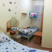 Во всех номерах двуспальная и двуярусная кровати, шкафчик для одежды, туалетный столик, настенные полочки, телевизор ЖК, сплит-система (тепло-холод), Wi-Fi.