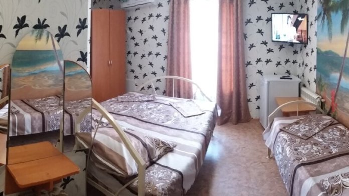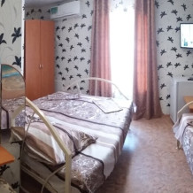 Это не шикарный отель с заоблачными ценами, а маленький семейный дом с номерами категории «стандарт» наиболее востребованными среди семейных туристов, посещающих курорт Анапа. К Вашим услугам светлые уютные комнаты на 2,3,4-человека. Мы постарались для Вас создать уютную домашнюю атмосферу с необходимым минимумом удобств. Во всех номерах душ, туалет, телевизор, холодильник, сплит-система ( тепло - холод ), Wi-Fi.