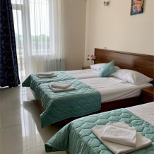 В номере категории «Трехместный стандарт с балконом» гостям предлагается размещение с одной двуспальной и одной односпальной кроватью или тремя односпальными (на выбор).