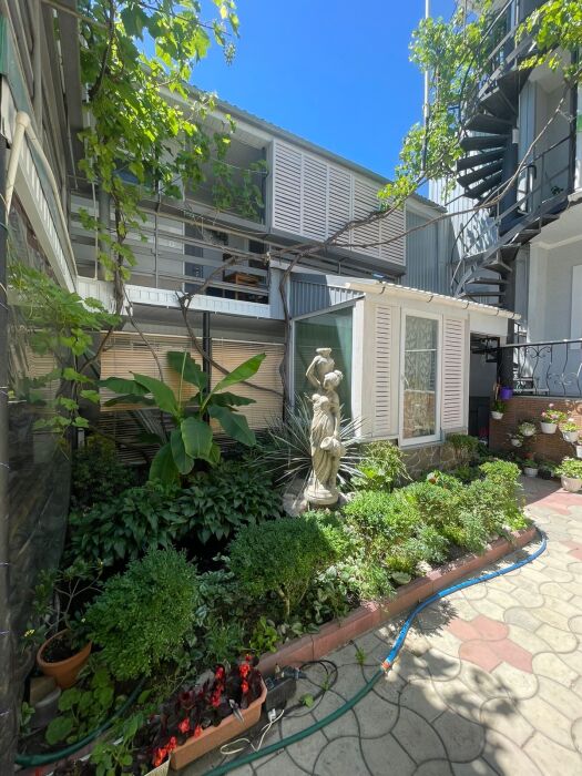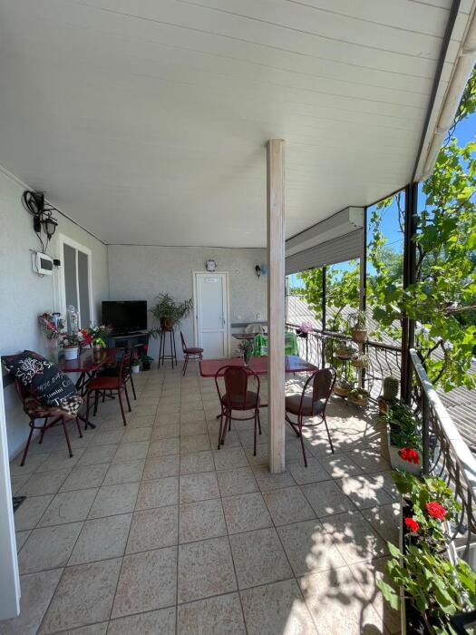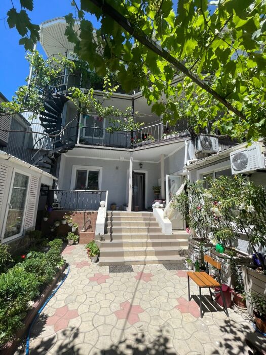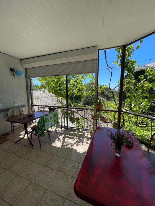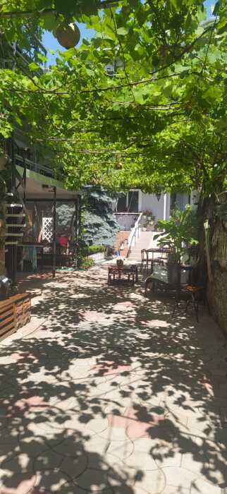 Прекрасный номер с балконом и видом на море со всеми удобствами и террасой с общей кухней для приготовления пищи, отдыха и индивидуальными для номера столом и стульями. Номер не жаркий, дарит прохладу в летние крымские дни. ПРОШУ ОБРАТИТЬ ВНИМАНИЕ ЛЕСТНИЦА НА ЭТАЖ ВИНТОВАЯ, удобные марши и не представляет опасность ,за исключением людей с проблемами опорно -дв.системы.насаждениями.Оплата наличными. В случае досрочного выезда удерживается стоимость одних суток.суток.Предоставляем трансфер за дополнительную оплату.
