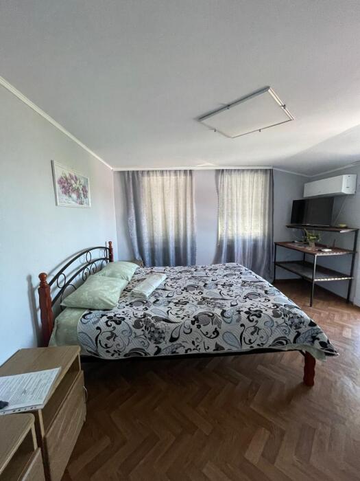 Идеальный вариант размещения для тех, кто любит тишину и уединение. В номере есть всё необходимое для комфортного отдыха. Данный номер не имеет общего коридора с другими номерами. Индивидуальный санузел расположен в соседнем помещении. Собственная кухня со всем необходимым находится рядом с номером. На террасе . Длинная терраса располагает к неспешному отдыху на ней либо приему пищи и вечерним посиделкам. Оптимальный вариант для семьи из взрослого и двух детей. На этаж ведёт винтовая лестница !насаждениями.Оплата наличными. В случае досрочного выезда удерживается стоимость одних суток.