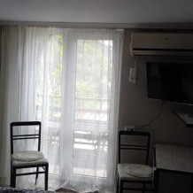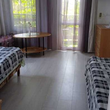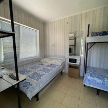 Номер на 1 этаже, на выходе из номера расположена персональная кухонная зона, рядом уютная беседка для отдыха и приема пищи, а также скамья , на которой можно комфортно расположиться и наслаждаться тихими летними морскими вечерами. Рядом с номером небольшой прудик с рыбками и зелёными насаждениями.Оплата наличными. В случае досрочного выезда удерживается стоимость одних суток.Предоставляем трансфер за дополнительную оплату.