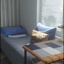 Комфортный номер в морском стиле предполагает размещение семьи, пары, просто друзей или семьи с ребенком. Номер со всеми удобствами, небольшой чайный набор. Рядом с номером расположен холодильник и кухонная зона. А также терраса для отдыха и приема пищи.ПРОШУ ОБРАТИТЬ ВНИМАНИЕ ЛЕСТНИЦА НА ЭТАЖ ВИНТОВАЯ, удобные марши и не представляет опасность ,за исключением людей с проблемами опорно -дв.системы.насаждениями.Оплата наличными. В случае досрочного выезда удерживается стоимость одних суток.суток.Предоставляем трансфер за дополнительную оплату.