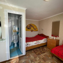 Данный номер идеально подойдёт для семьи либо семьи с ребенком. Все удобства в номере. Кухня со всей необходимой посудой находится рядом на этаже. Около номера расположена терраса для отдыха и приема пищи, а также в тени виноградной лозы насладиться морским воздухом и дарами крымской земли. Есть возможность размещения семьи с ребенком под запрос.насаждениями.Оплата наличными. В случае досрочного выезда удерживается стоимость одних суток.суток.Предоставляем трансфер за дополнительную оплату.