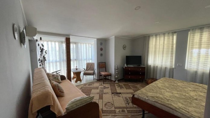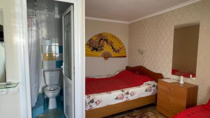 Двухкомнатный номер с широкой террасой на 3 номера, индивидуальным балконом, кухней на три номера и окнами на море. Прошу обратить внимание: лестница на этаж винтовая, удобные марши и не представляет опасности, за исключением людей с проблемами опорно двигательной системы.насаждениями.Оплата наличными. В случае досрочного выезда удерживается стоимость одних суток.суток.Предоставляем трансфер за дополнительную оплату.