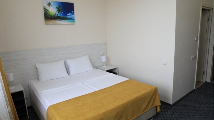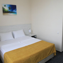 Номер с одной большой двуспальной кроватью или с двумя односпальными кроватями (по желанию). Так же по желанию за дополнительную плату в номер можно поставить удобную дополнительную раскладную кровать с постельным бельем, подушкой и одеялом. В комплектацию номера входит также телевизор с плоским экраном, небольшой холодильник, гостиничный сейф, кондиционер, столик, стулья и прикроватные тумбочки. Санузел с душевой кабиной, раковиной, унитазом и феном в каждом номере. В каждом номере есть небольшой «французский» балкончик для сушки белья и пляжных принадлежностей.