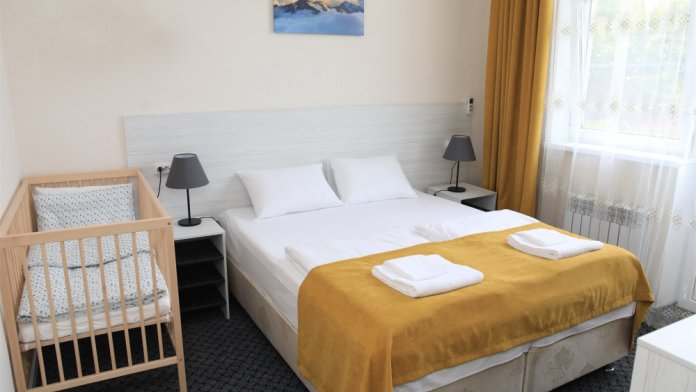 Все номера оснащены телевизорами, кондиционерами, холодильниками. Бесплатный WI-FI. На территории мини-отеля расположен буфет, где можно заказать в номер очень вкусный завтрак, обед, ужин, чай, кофе или разливное пиво. Весь интерьер новый и современный.