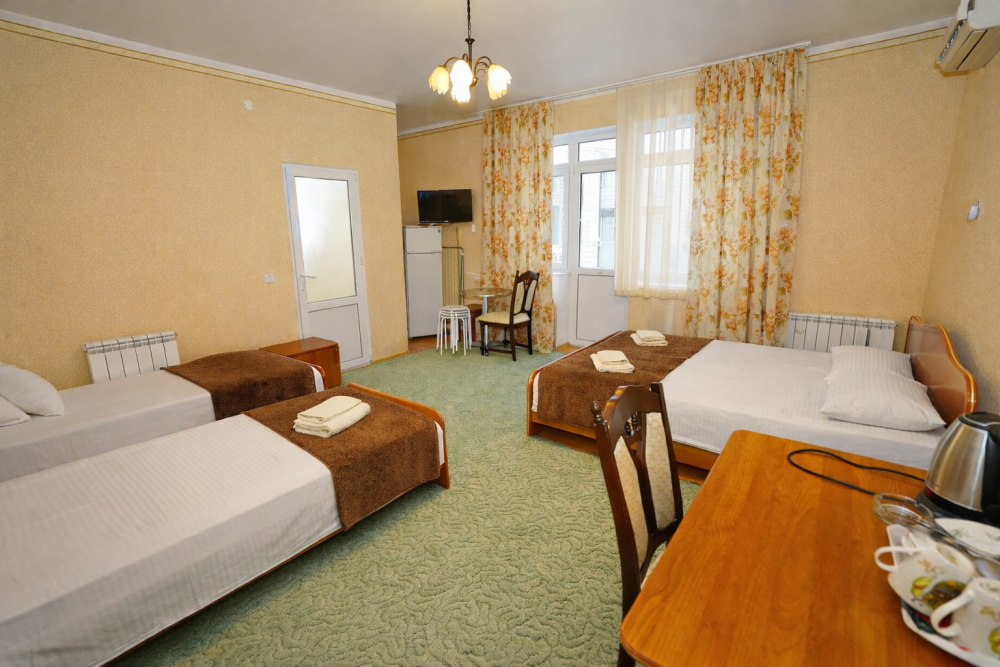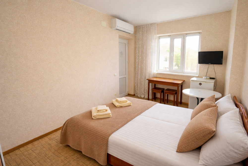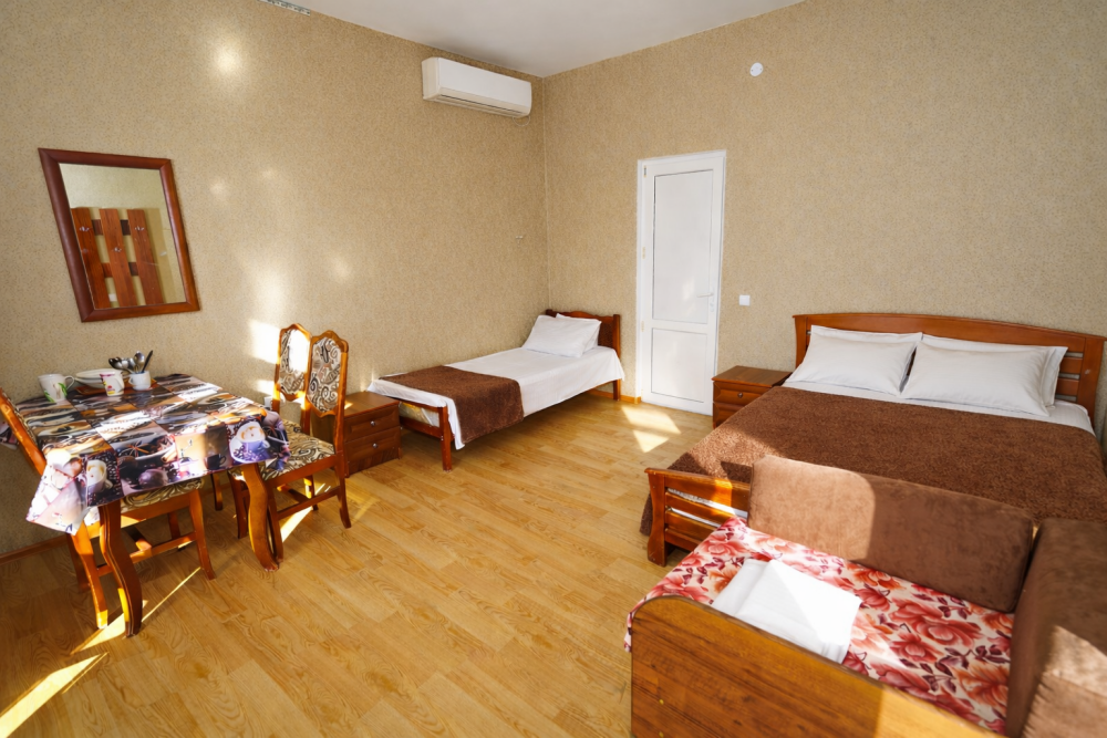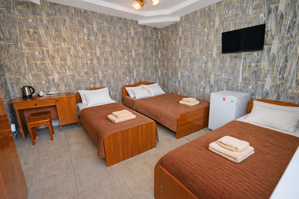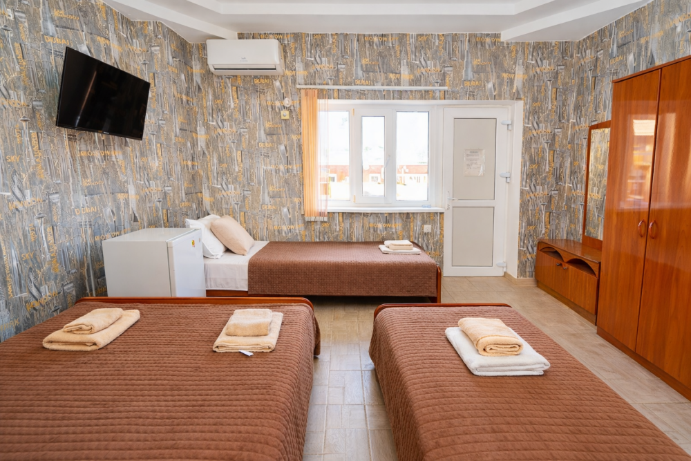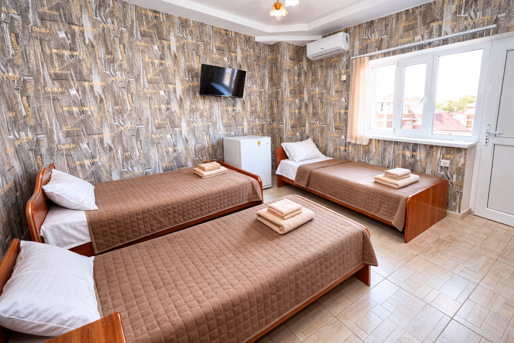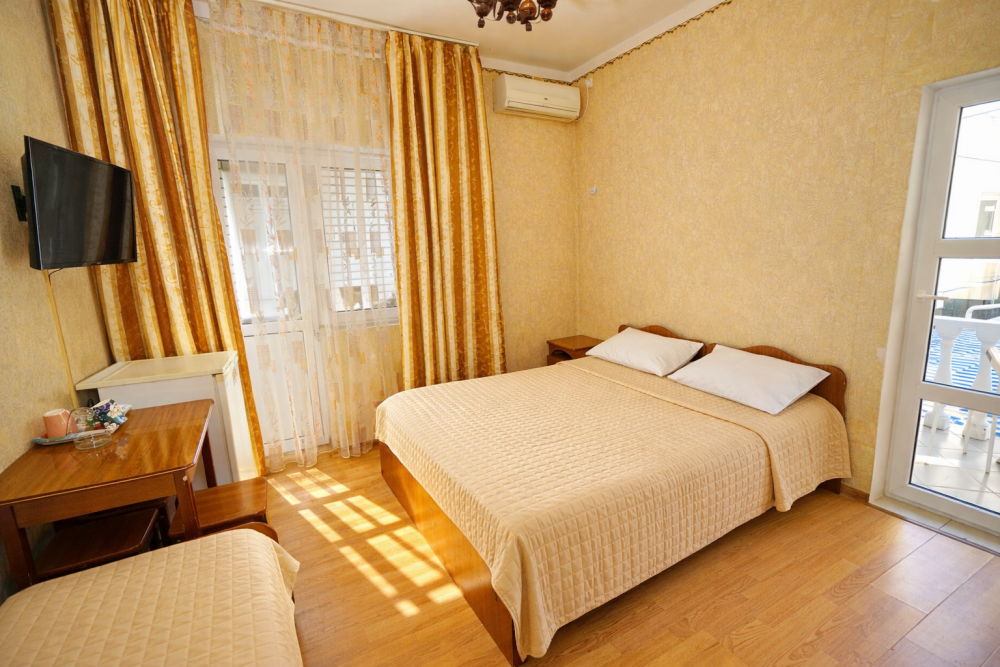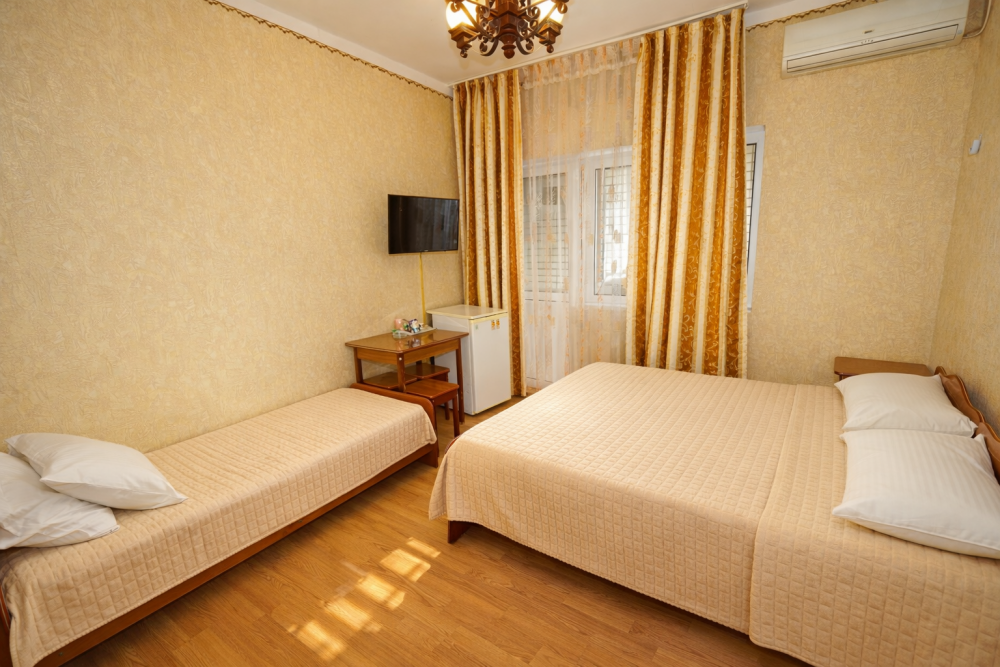 В нашем гостевом доме Вас ждут уютные номера, оформленные в современном стиле. Каждый номер оснащен всем необходимым для комфортного проживания: кондиционером, телевизором, холодильником и бесплатным Wi-Fi.