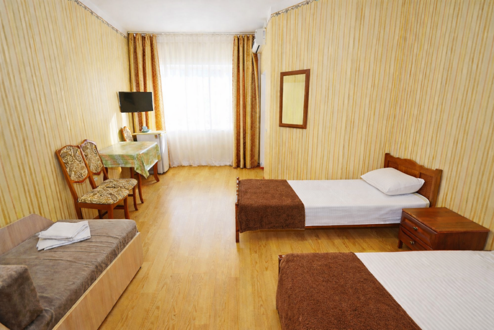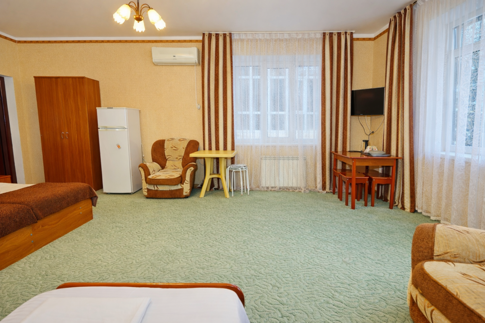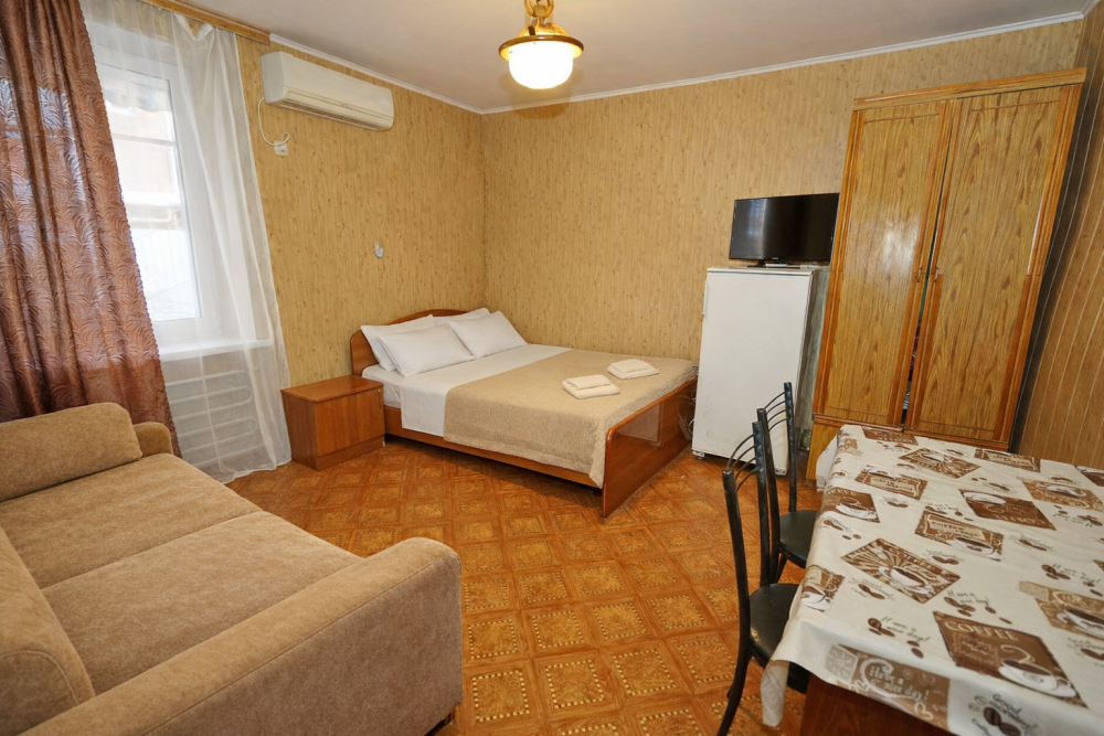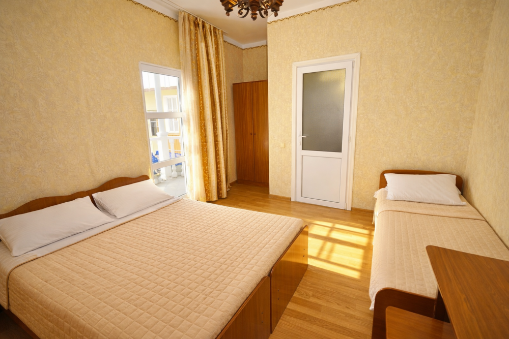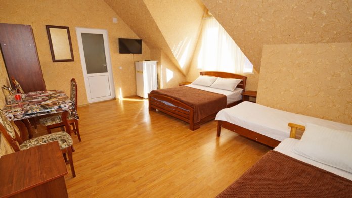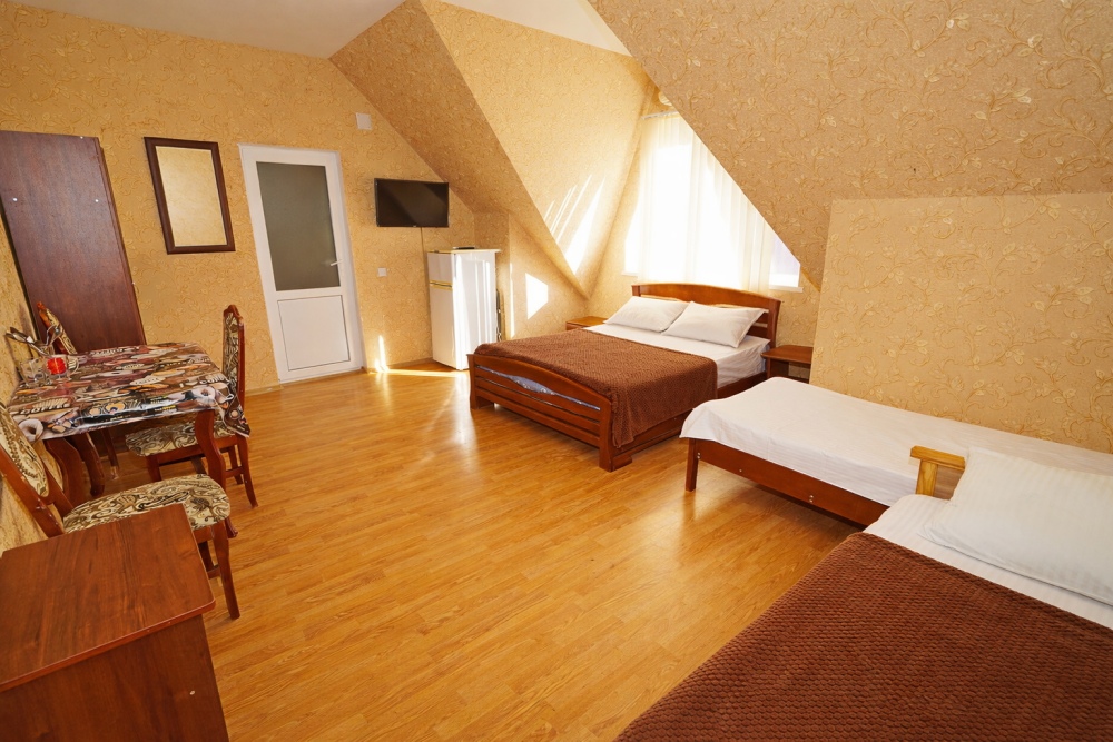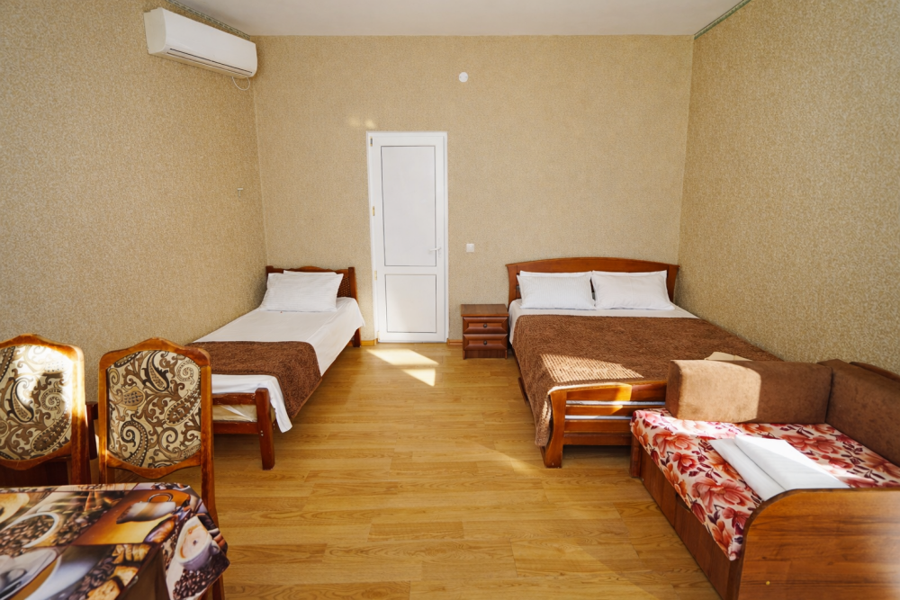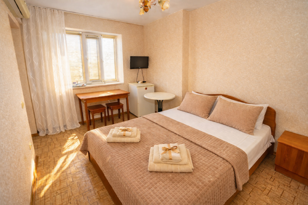 В нашем гостевом доме Вас ждут уютные номера, оформленные в современном стиле. Каждый номер оснащен всем необходимым для комфортного проживания: кондиционером, телевизором, холодильником и бесплатным Wi-Fi.
