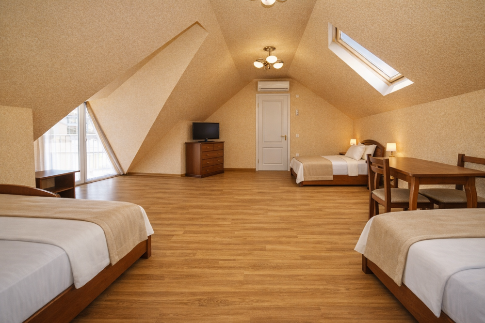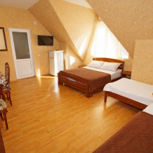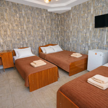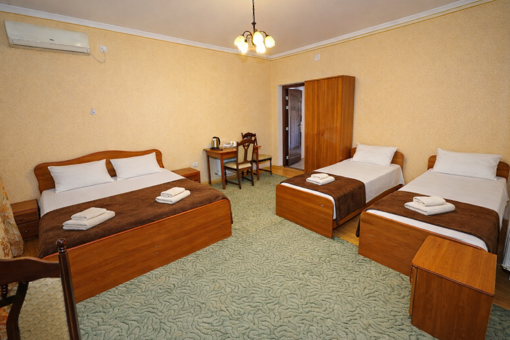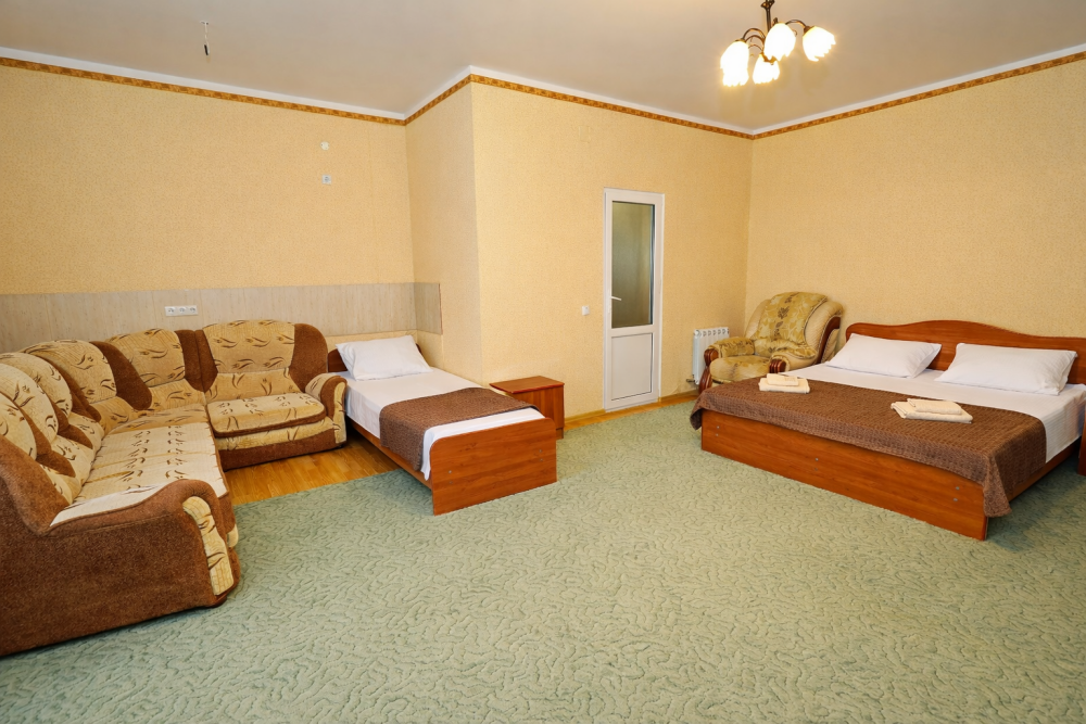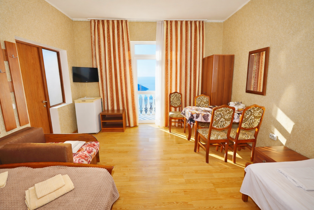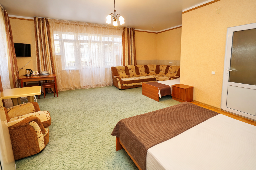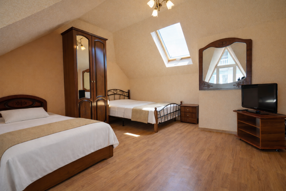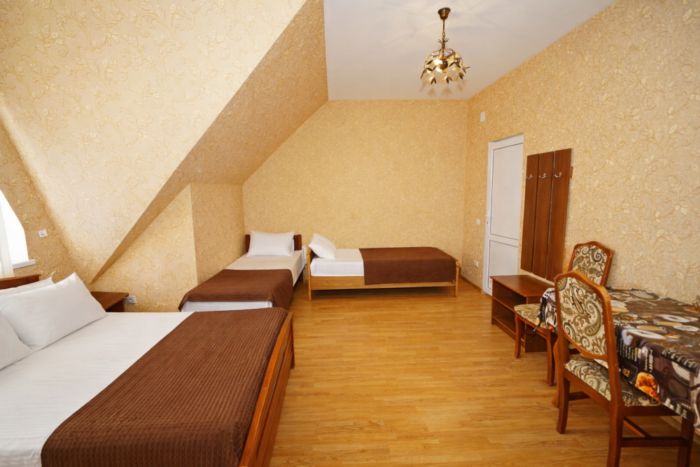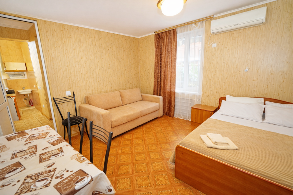 В нашем гостевом доме Вас ждут уютные номера, оформленные в современном стиле. Каждый номер оснащен всем необходимым для комфортного проживания: кондиционером, телевизором, холодильником и бесплатным Wi-Fi.