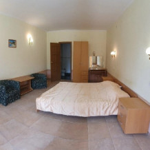 Номерной фонд представлен несколькими категориями, которые укомплектованы так, чтобы абсолютно всем гостям было максимально комфортно. В номерах есть собственная ванная комната, удобная спальная мебель и необходимая современная техника. Некоторые категории имеют вид на море. Также есть номера-апартаменты с собственной кухней.