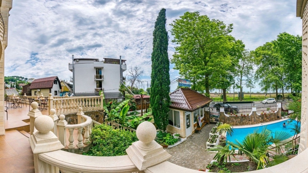 Особенно приятным сюрпризом стало кафе при отеле, где мы наслаждались вкусным шашлыком и хачапури. Вечерами прекрасная возможность отдохнуть на веранде, расположенной на лежаках, открывающих завораживающий вид на море.