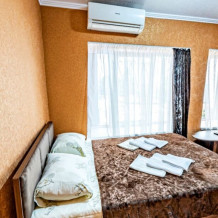 Администратор или он же хозяин просто хам! Разговаривать с ним культурно нельзя! Как - будто попала в 90- е., бандитские выходки у него, аж страшно общаться с таким. Поселил нас в номер, где ничего не работало: кондиционер был без крышки и режимы не переключались ,работал , как трактор на одном режиме самом сильном режиме. Туалет не смывал, нужно было каждый раз поднимать полностью крышку, чтоб он смыл. Телевизор не работал! Ребенок плакал, не мог смотреть свои любимые мультики. В номере не убирались ни разу. Если ты в номере находился, то забирали мусор, а если ушел, то все ,мусор оставался . Завтрак был ужасным, каши на воде, салаты тошнотворные,сосиськи самые дешевые,есть их нельзя! Отель находится в ужасном месте, железная дорога и автомобильная трасса находятся совершенно рядом 100метров. Стук колес поездов, выхлопные газы от автомобильной артерии, это ужасно! Мы там с внучкой смогли прожить только 4 бессонные ночи и съехали в другой хороший отель. Когда я решила покинуть отель тут то и началось ужасное, этот бандит администратор не захотел отдавать мне мои деньги за не прожитые 12 ночей, и за Форенто! Он измывался надо мной очень долго! Пока моя дочь не позвонила ему и не пригрозила ему полицией! Тогда он отдал мне не все деньги, высчитал еще одни сутки мной не прожитые и за форенто. Потом он схватил наши вещи и начал выгонять! У внучки была рвота в это время от их завтрака! Она плакала , ей 9 лет! Аон вот так без жалости все делал! Мы уехали в другой отель, где нас культурно и по доброму встретили! И наконец- то мы начали отдыхать нормально! Спать на раздельных кроватях, очень удобных и не дышать газами. Там он поселил нас на одну кровать! Это просто ужас! Желаю всем хорошего отдыха подальше от этого , если его еще можно назвать так , отеля! Да, и еще , лифт постоянно ломался! И я , мне 71 год приходилось ходить пешком на 3- ий этаж! С моим больным сердцем! Счастья и здоровья всем !