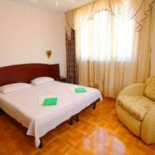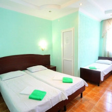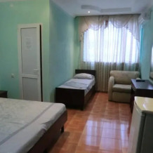 Для проживания гостям предлагаются комфортабельные уютные номера со всеми удобствами, в каждом номере 1-2 доп. место. Номера оборудованы всем необходимым, что нужно для комфортного, спокойного отдыха. В каждом номере гостей ждет удобная, стильная мебель, создающая ощущение гармонии, кондиционер, современные телевизоры, холодильник, туалетный столик, санузел - душ и туалет в каждом номере.