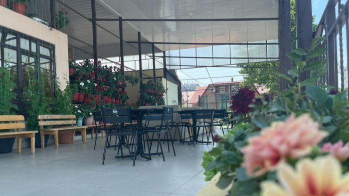 На втором этаже гостиницы есть большая терраса с декоративным фонтаном, столами и солнцезащитными зонтами. С террасы открывается панорамный вид на Черное море, где можно хорошо и приятно провести время.