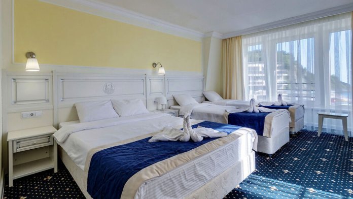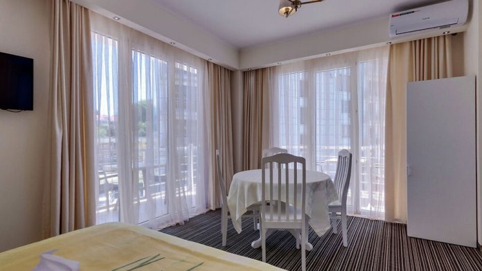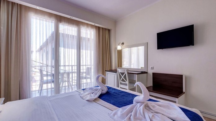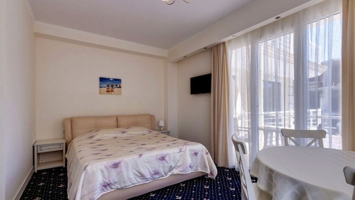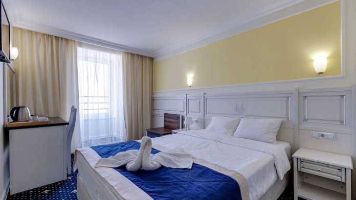 Отель с комфортабельным корпусом предлагает гостям номера со всеми удобствами класса «Стандарт», «Комфорт» и «Апартаменты с кухней». Каждый номер отеля с 1 по 4 этаж оборудован кондиционером, холодильником, телевизором, сейфом, панорамными окнами с выходом на балкон. Балкон оборудован столом и стульями. Номера на 5 этаже идентичны, без балкона. Собственная ванная комната укомплектована феном и бесплатными туалетно-косметическими принадлежностями, комплектом полотенец. Установлена система электронных замков. Пол в коридорах и номерах покрыты ковровым покрытием. В отеле имеется лифт (до 4 этажа включительно).