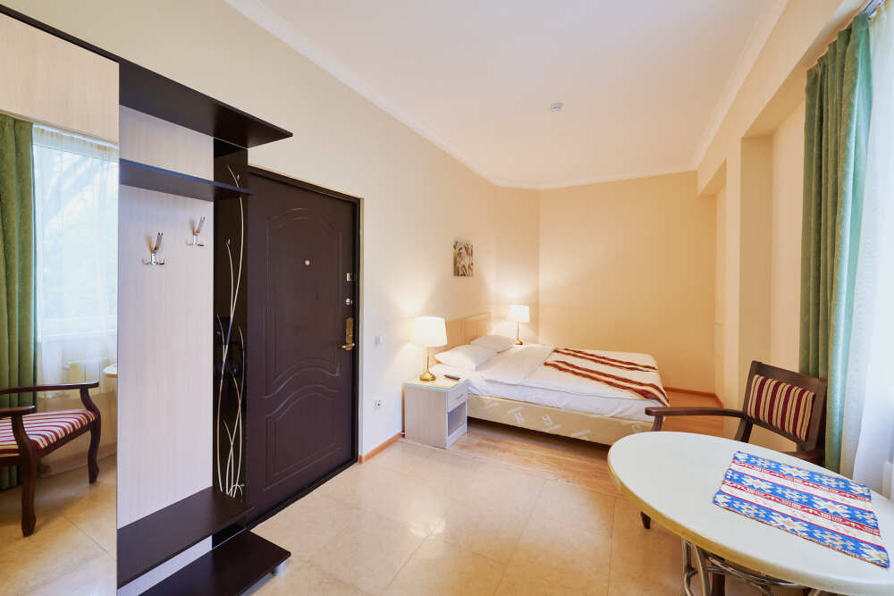 Бронировали на 2 дня, впечатление не очень, очень далеко от моря, сервиса никакого нет. Кухни тоже нет, душ, туалет на этаже. Номер очень простенький,вид из окна никакой, кровати ужасные. Администраторы внимательные, к ним претензий нет.