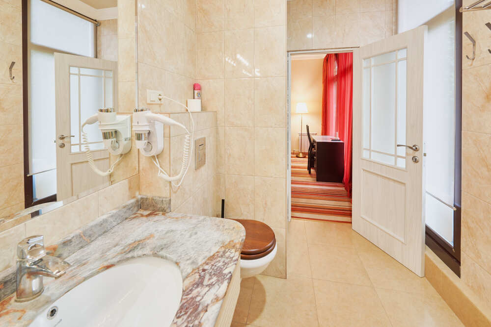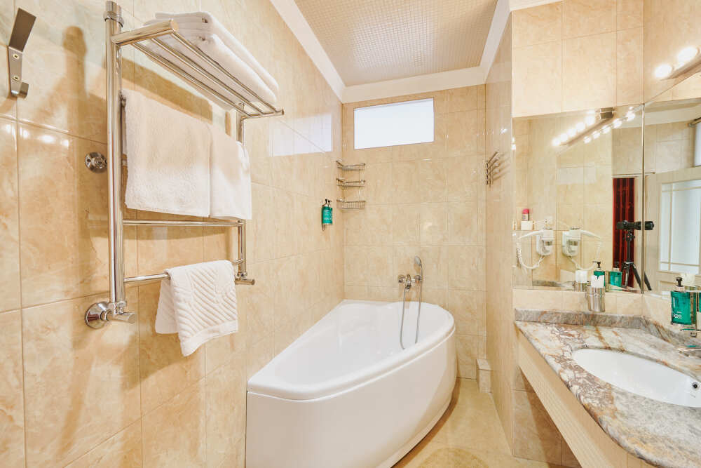 Прекрасное место для отдыха! Просторные номера с отличным ремонтом, огромная ванная комната с оконным панорамным стеклом до пола — все продумано до мелочей. В ванной есть крючки, полочки и средства гигиены, включая зубные щетки и пасту. Номера оборудованы посудой, чайником, пакетиками чая и кофе, зубочистками и салфетками. В бутылочках всегда есть питьевая вода. Все чисто, уютно и красиво. Матрасы и подушки способствуют глубокому и комфортному сну. В отеле царит тишина и спокойствие. Завтраки вкусные и разнообразные. В общем, отель заслуживает только похвал.