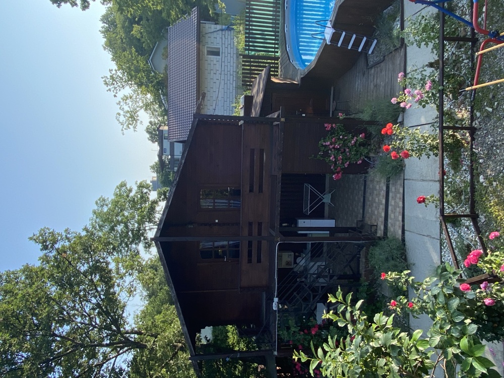 Отдельно стоящий коттедж со своей кухней. Спальных месть до 6. С/узел в номере, большая веранда. Вид на море сквозь кроны деревьев и вид на сад.