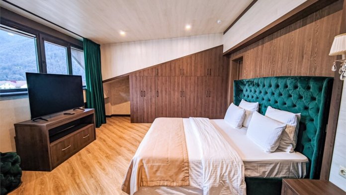 Отель «Vertex» предлагает просторные и светлые номера с потрясающими видами на Кавказские горы и ухоженные улочки Красной Поляны. Интерьеры отеля оформлены в изысканном альпийском стиле с использованием природных элитных материалов — мрамора и гранита, дерева и оникса.