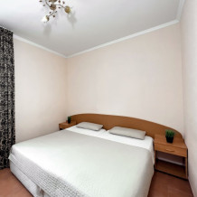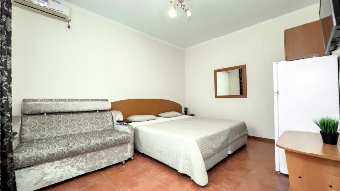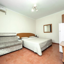 В семейном номере может разместиться до 4 гостей. Для вашего удобства в номере двуспальная кровать или две односпальные, диван - кровать, 2 тумбочки, шкаф для одежды, телевизор, кондиционер, холодильник, собственная ванная комната, комплект постельного белья, набор полотенец, посуды.