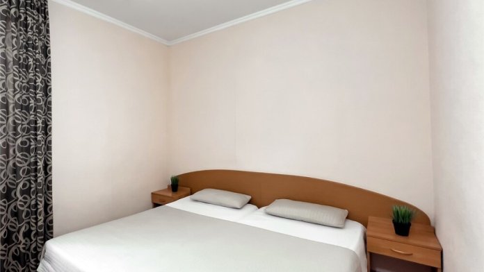 Для вашего удобства в номере представлены 2 односпальные кровати или одна двухспальная, 2 тумбочки, шкаф для одежды, телевизор, кондиционер, холодильник, набор посуды, комплект постельного белья, полотенец, фен, собственная ванная комната.