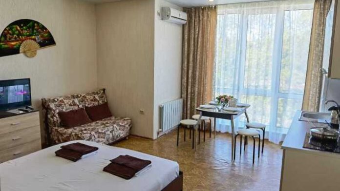 Четырехместный номер с собственной кухней, столом, стульями, столовыми принадлежностями ванной комнатой.