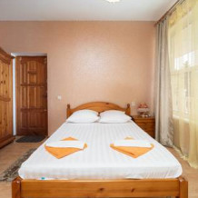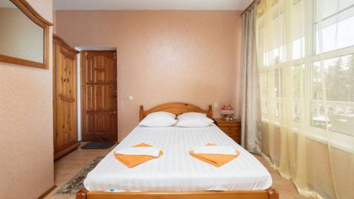 Здание представляет собой четырехэтажный корпус. Размещение гостевого дома рассчитанно на 20 номеров. Номерной фонд состоит из двухместных однокомнатных номеров или двухкомнатных номеров.