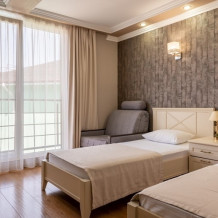 Для Вас комфортабельное размещения семейного типа, номера категории стандарт, люкс, семейный люкс, апартаменты с кухней. Все номера оснащены кондиционером, телевизором и собственной ванной комнатой.