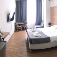 Отель расположен на первой береговой линии, с оборудованным галечным городским пляжем.