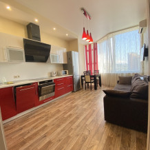 Шикарные 3-комнатные апартаменты с 2-мя балконами, расположены на 16 этаже корпуса Д, откуда открывается прекрасный вид на море, отлично подойдет для размещения компании до 10 человек. Площадь апартаментов 140 кв.м Три двуспальные кровати, 2 дивана, большая кухня со всей необходимой техникой, телевизор, фен, утюг, холодильник, чайник, микроволновая печь и электрическая плита, духовой шкаф, посудомоечная машина, стиральная машина. Кондиционер,Wi-Fi . Душевая, ванная и 2 туалета. В стоимость входит парковка, Wi-Fi, банные принадлежности.