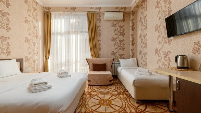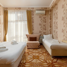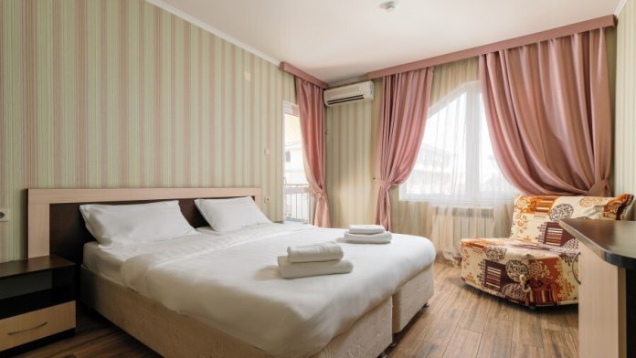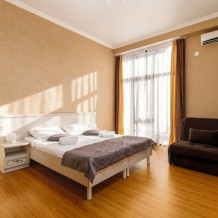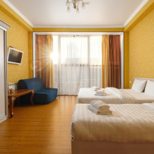 От нашего отеля Вы за две минуты дойдете до городского галечного пляжа, а любители активного отдыха и развлечений без труда доберутся до спортивных площадок, ночных клубов и ресторанов. Дети с удовольствием посетят дельфинарий, океанариум, террариум, а также парк развлечений, находящийся поблизости.