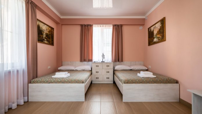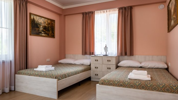 Гостевой дом «Танго в поляне» состоит из двух корпусов и идеально подходит для людей, предпочитающих просторные номера и удобные кровати.