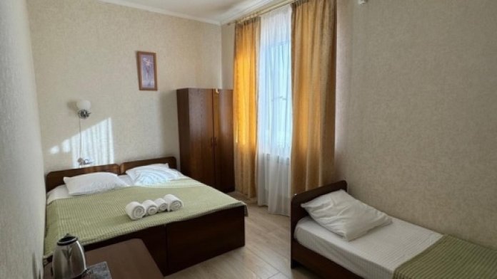 Предлагаются номера на двух или трех человек, с кроватью, кондиционером, шкафом и телевизором. Из удобств также имеются комплект чистого постельного белья и полотенец, средства гигиены, Wi-Fi. На этаже находятся утюг и гладильная доска, стиральная машина.