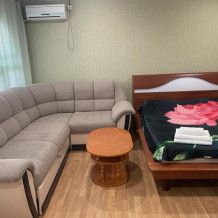Две комнаты, две двуспальные кровати или четыре односпальные кровати, шкаф, тумбочка, стол, телевизор, холодильник, сплит-система, с/у совмещен с душем (бортики),Wi-Fi. Общий балкон.