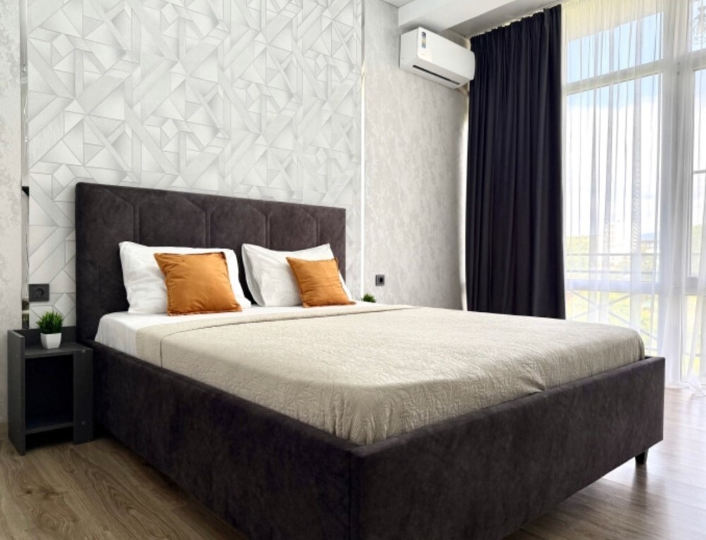 Двухместный люкс с индивидуальным балконом оборудован современной мебелью, каждый номер оформлен яркими акцентами
