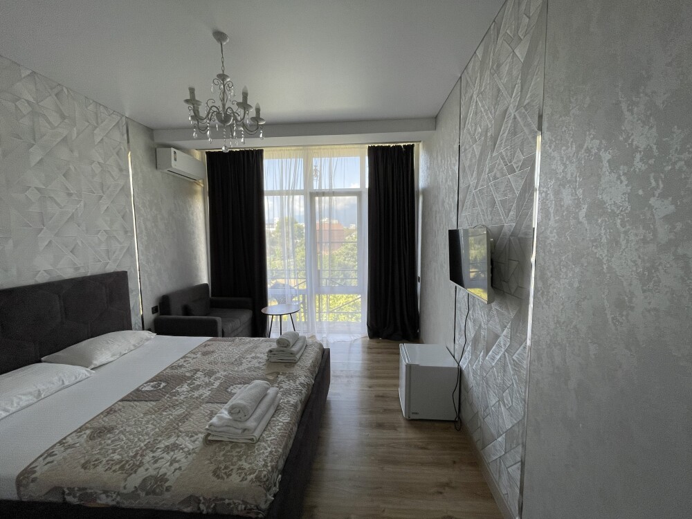 Трехместный люкс с индивидуальным балконом оборудован современной мебелью, каждый номер оформлен яркими акцентами современного дизайна. В номере есть: холодильник, кондиционер, чайник, телевизор, WI-FI, душ туалет с косметическими принадлежностями и феном.