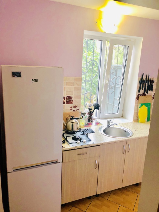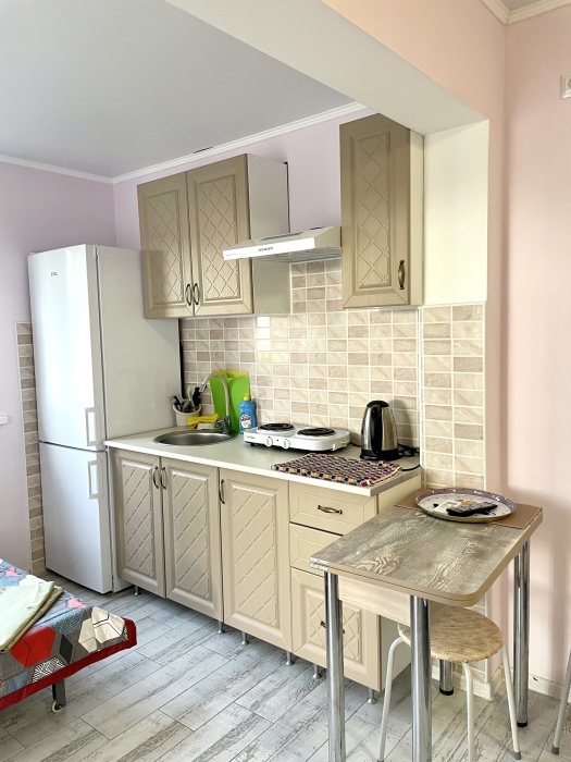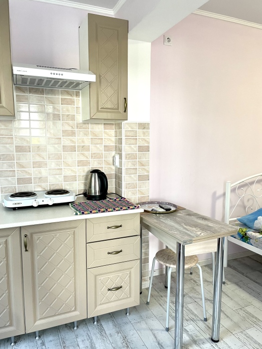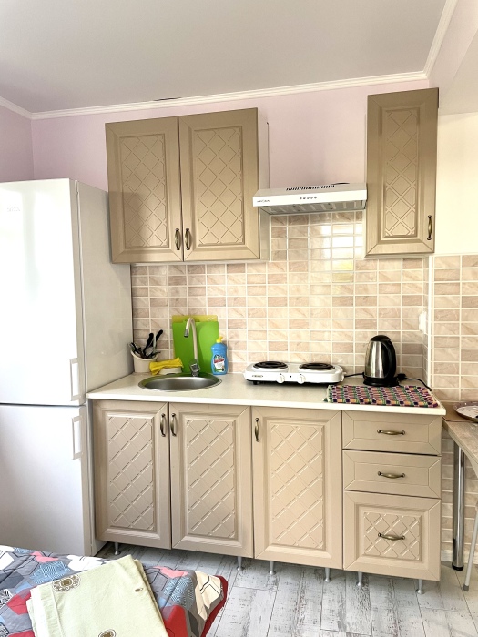 Кухня – на 4 номера на 1-ом этаже. В кухне стоит кухонный гарнитур, газовая плита, электрочайник, стиральная машина имеется также вся необходимая столовая и кухонная посуда.