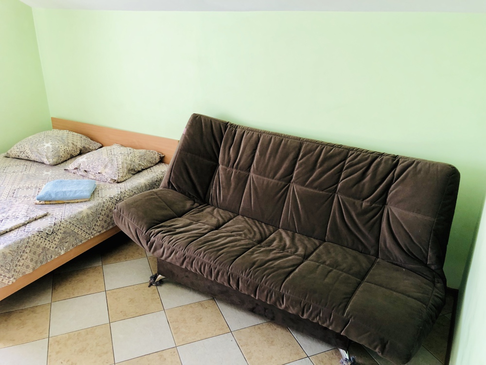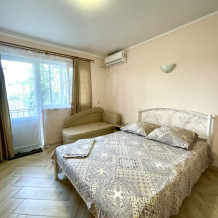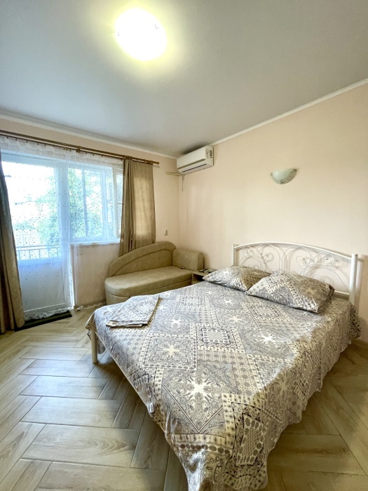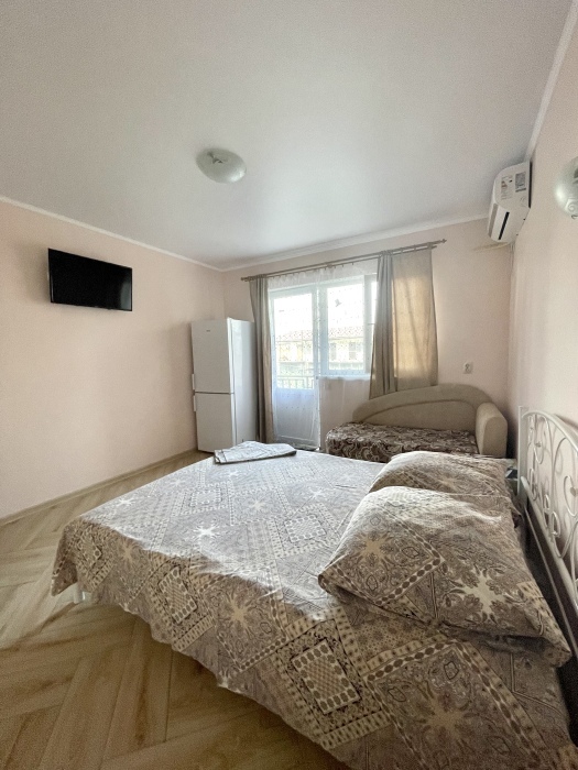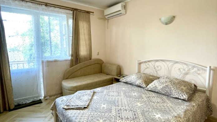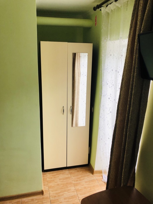 - Стандарт 3-местный на 3-ем этаже с балконом: в номере двухспальная кровать и диван, шкаф, прикроватная, тумбочка, зеркало, телевизор, кондиционер, электрочайник (удобства на этаже). На этаже 2 3-местных номера - душ, туалет, умывальник на эти два номера.