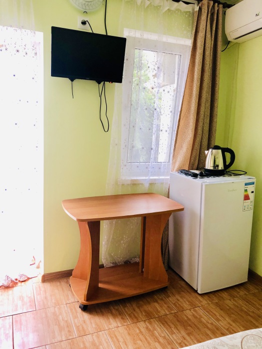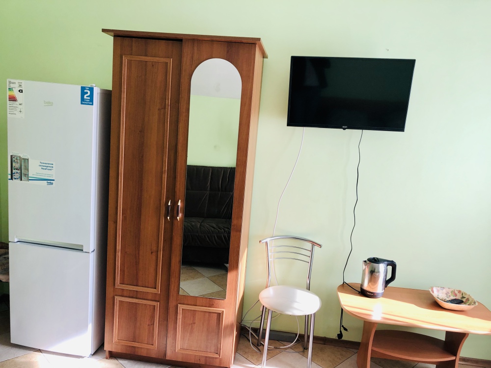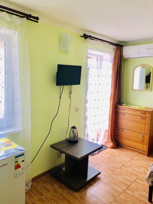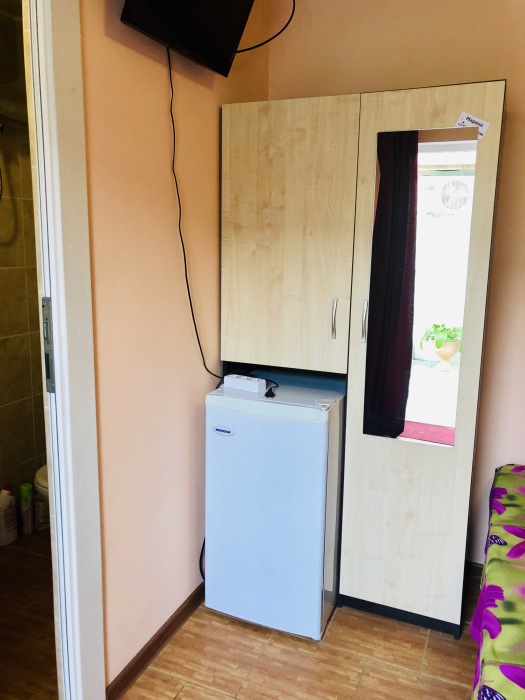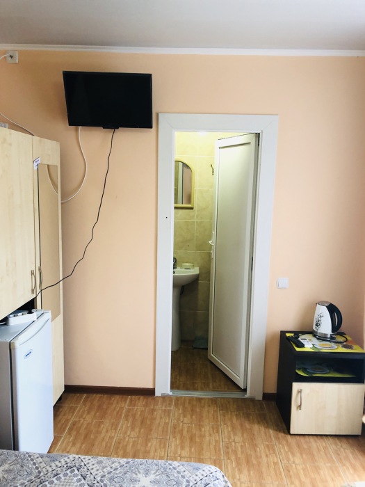 - 3-местный номер: душ, туалет, умывальник, телевизор, холодильник, электрочайник, кондиционер. В номере двухспальная и односпальная кровать, прикроватная тумбочка, шкаф, зеркало и журнальный столик.