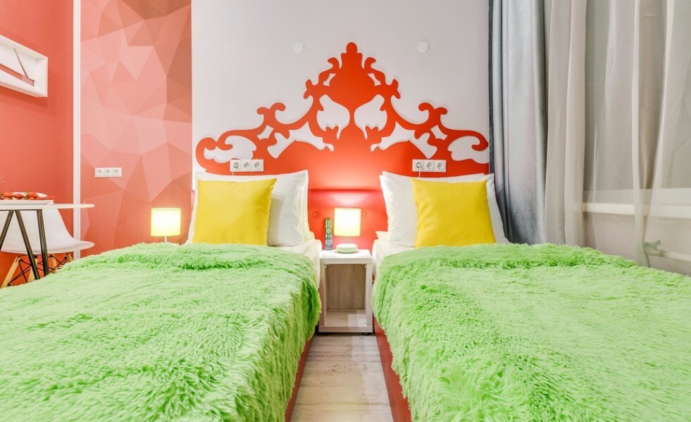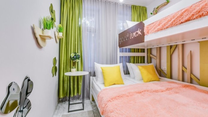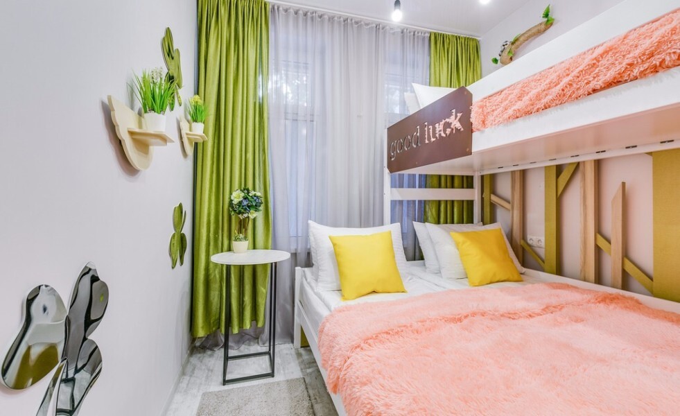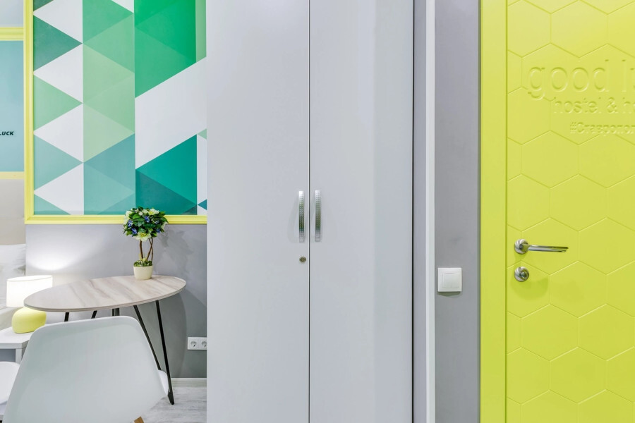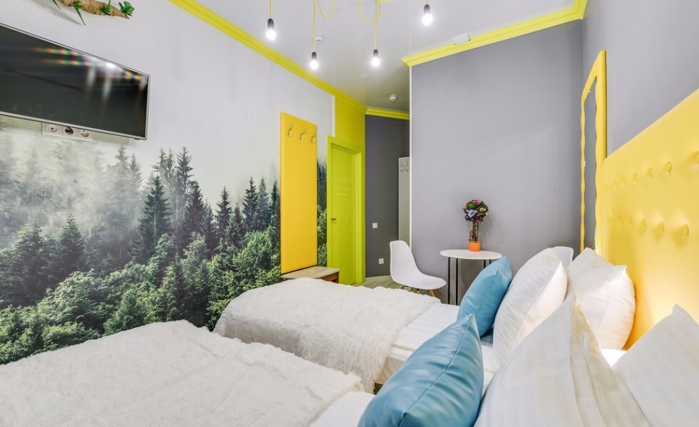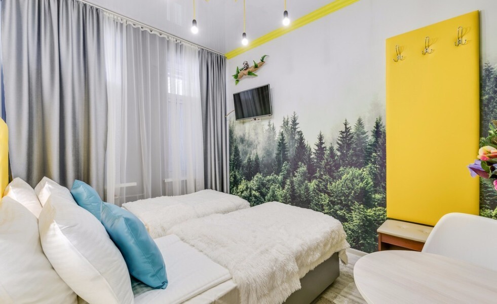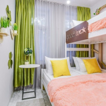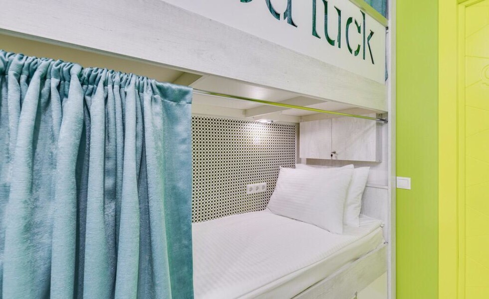 Вкусное сочетание интересных цветов, удобные кровати с ортопедическими матрасами и шторками, светлое пространство – в номере хостела приятно не только ночевать, но и просто проводить время.
