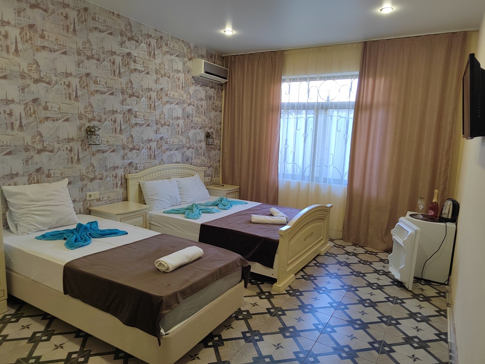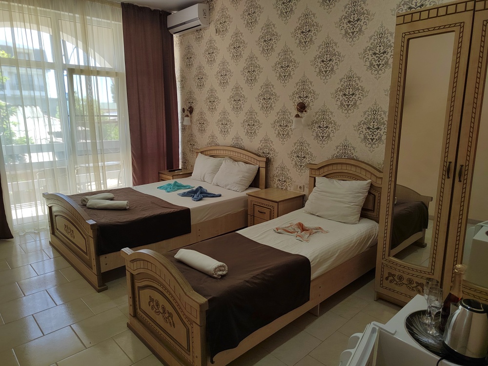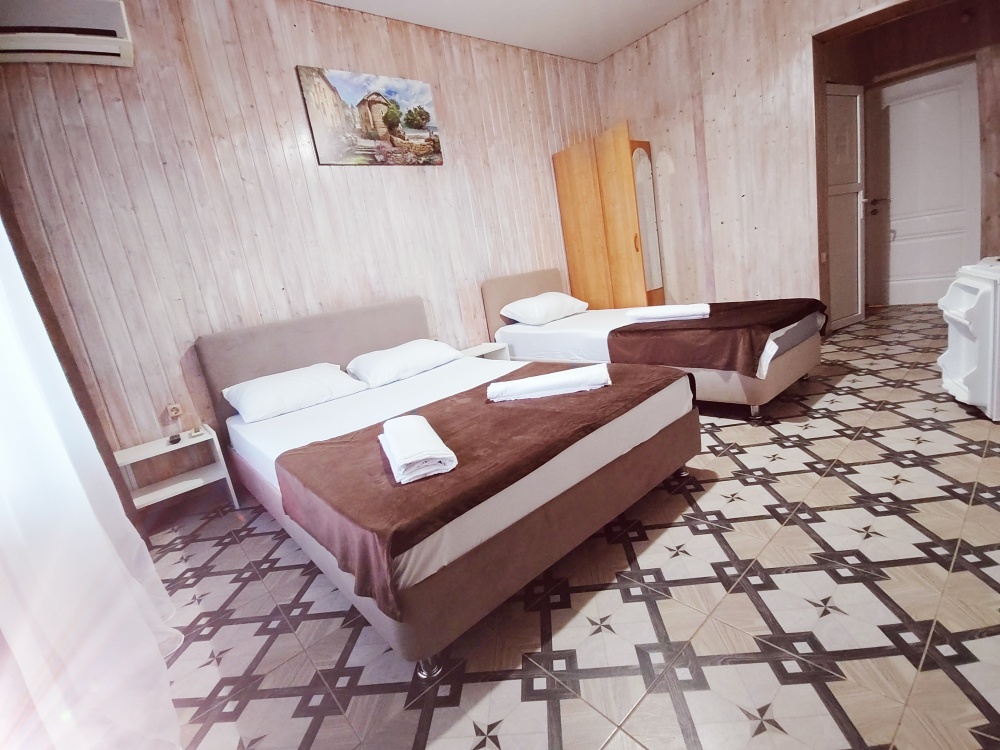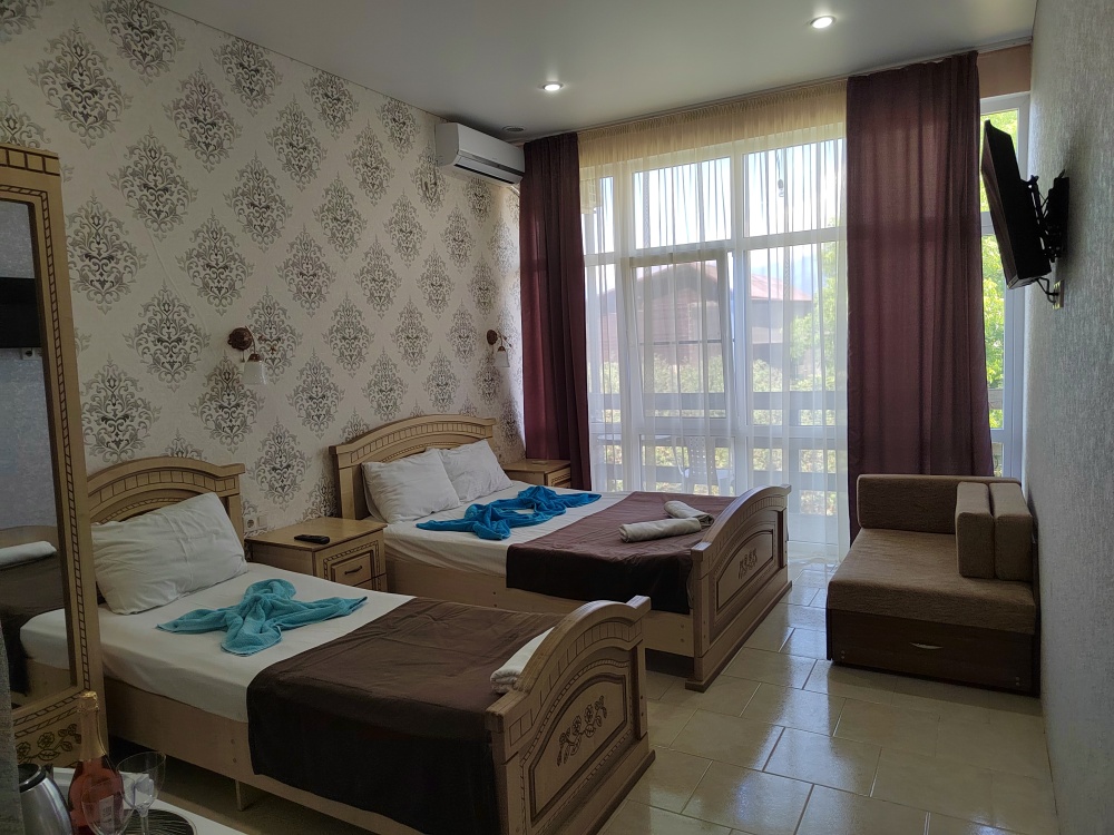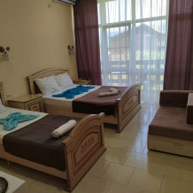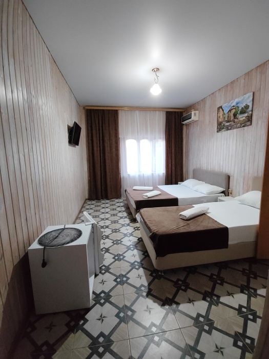 К услугам гостей уютные номера со всем необходимым для комфортного отдыха: душ, туалет, кондиционер, телевизор, холодильник, чайник, фен, полотенце в номере, вай-фай бесплатный.
