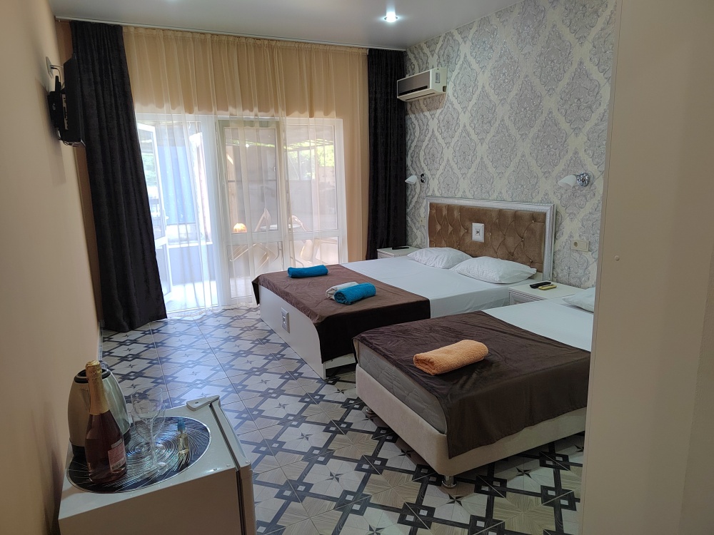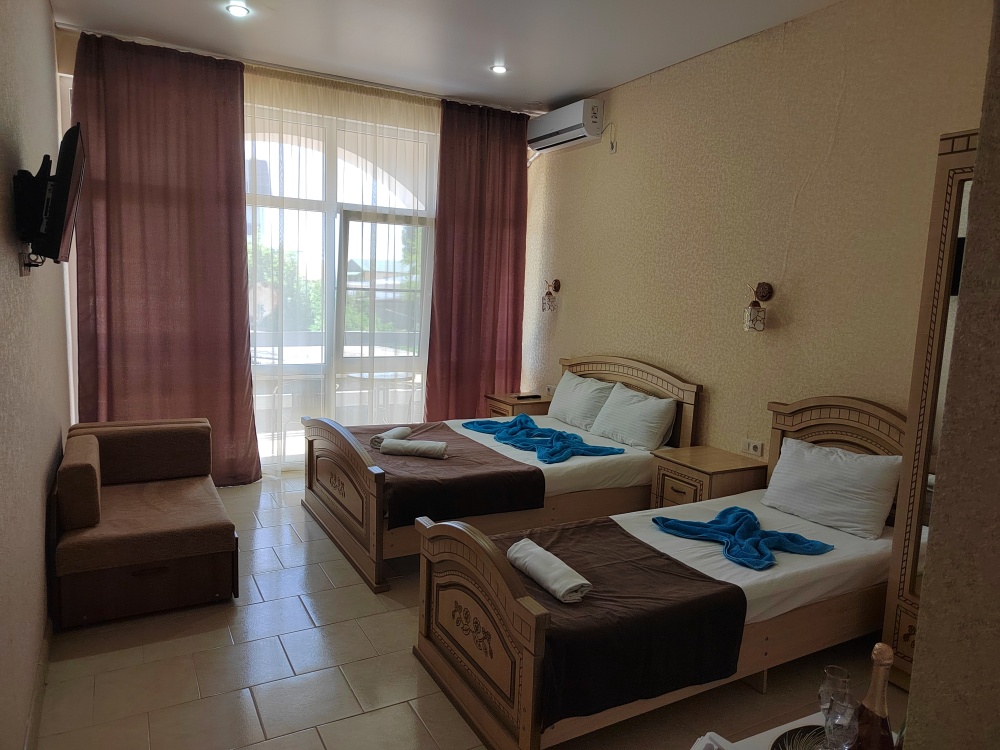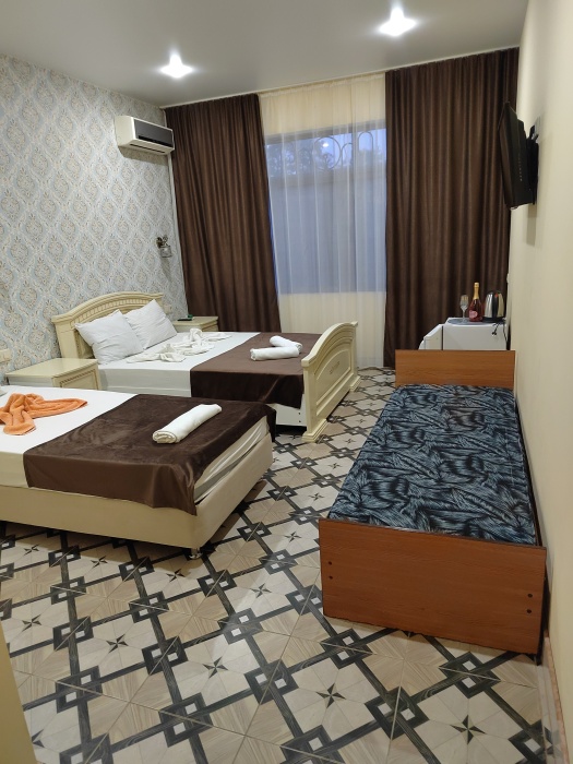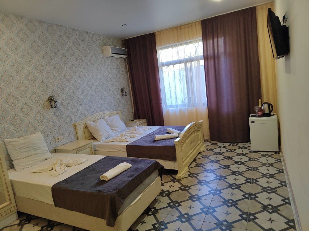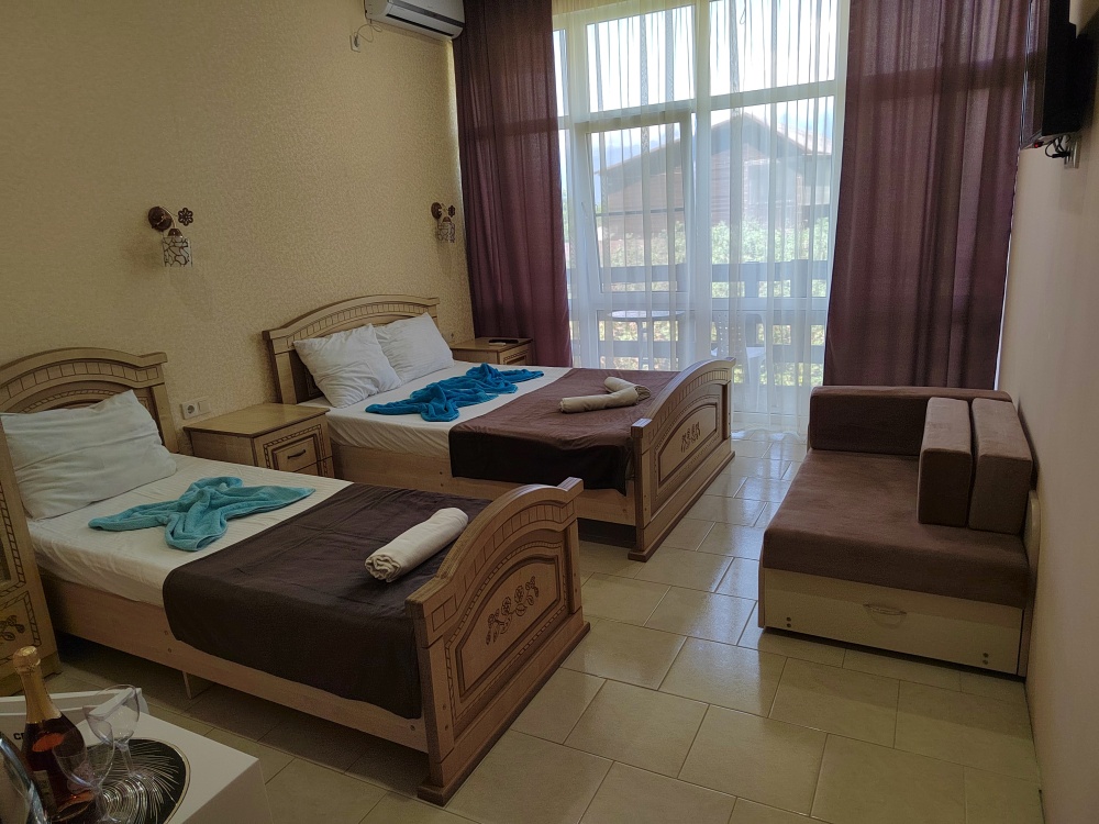 К услугам гостей уютные номера со всем необходимым для комфортного отдыха: душ, туалет, кондиционер, телевизор, холодильник, чайник, фен, полотенце в номере, вай-фай бесплатный.
