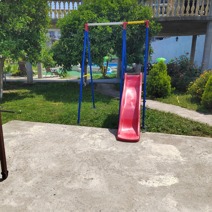 На территории имеется бассейн с подогревом, есть столовая, все по домашнему. Бесплатная парковка.