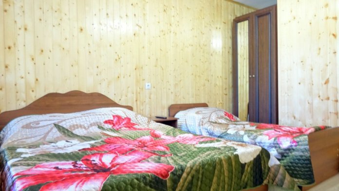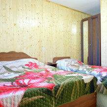 Мы предлагается для размещения двухкомнатный домик целиком или покомнатно. Рассчитана комната на проживание 3-4 гостей. В номере есть телевизор, кондиционер, санузел. Общие холодильники расположены на кухне.