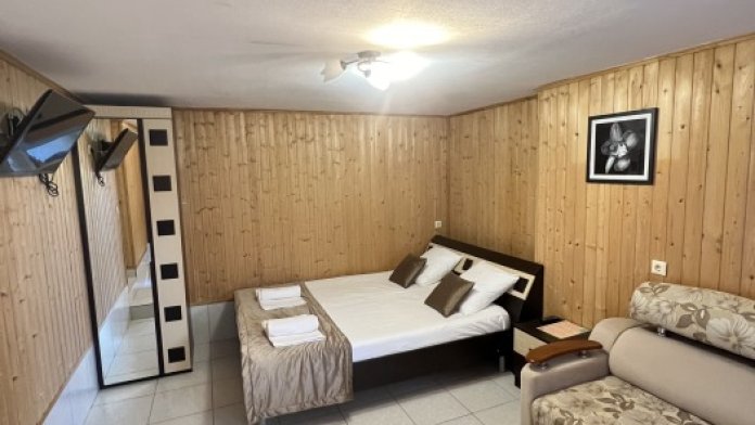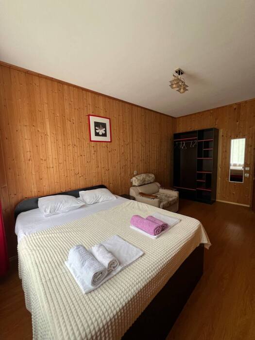 В номере душ, туалет, телевизор, кондиционер, двуспальная кровать, раскладное кресло, шкаф, тумбочка, фен, полотенца. Во всех номерах есть WiFI