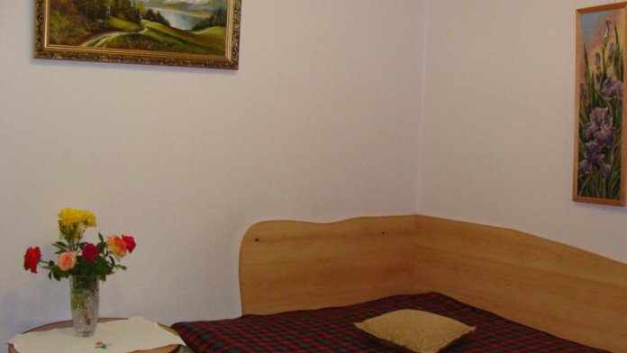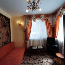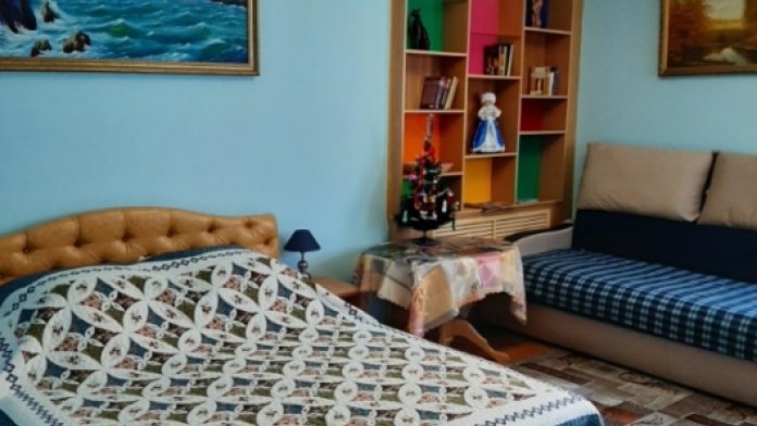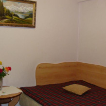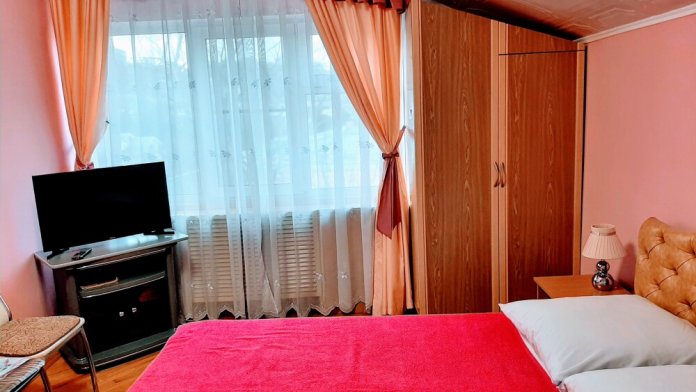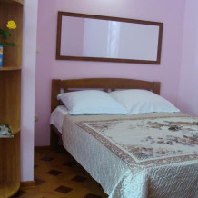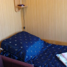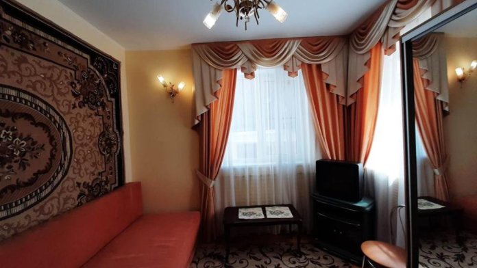 одноместная кровать, кресло-кровать, тумбочка с телевизором. Удобства на этаже (туалет, ванна совмещенные.