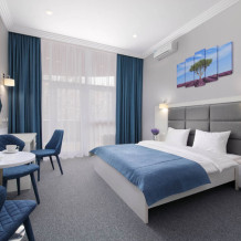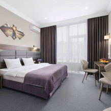 К услугам гостей 14 современных номеров. Каждый номер выполнен в стиле минимализма, в сдержанных пастельных тонах. К удобству гостей мини-бары, сейфы, телефоны, кондиционеры, чайные принадлежности, качественный текстиль, гигиенические наборы и широкая инфраструктура отеля.
