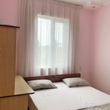 Наш номерной фонд представлен комнатами эконом класса, номерами с удобствами и домиками под ключ. Для приготовления пищи есть общая кухня. На территории много растений, имеются места для отдыха, мангал, парковка. Регулярно осуществляется замена постельного белья. Гости могут пользоваться стиральной машинкой, интернетом, заказать трансфер.