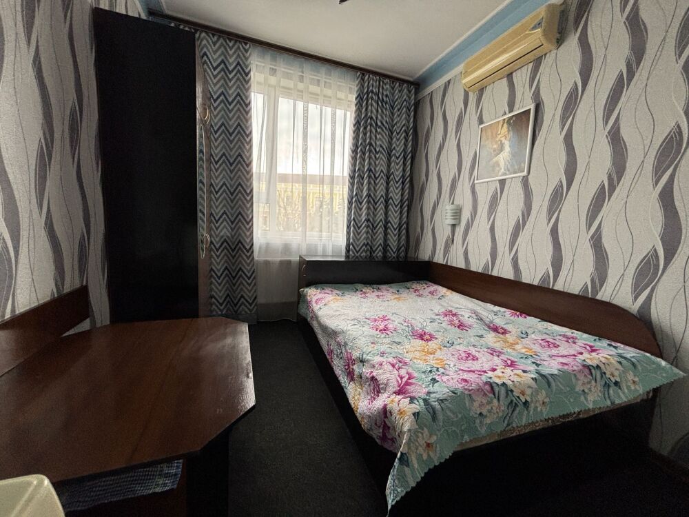 В номере мебель: Двуспальная кровать, шкаф, стол, стулья.